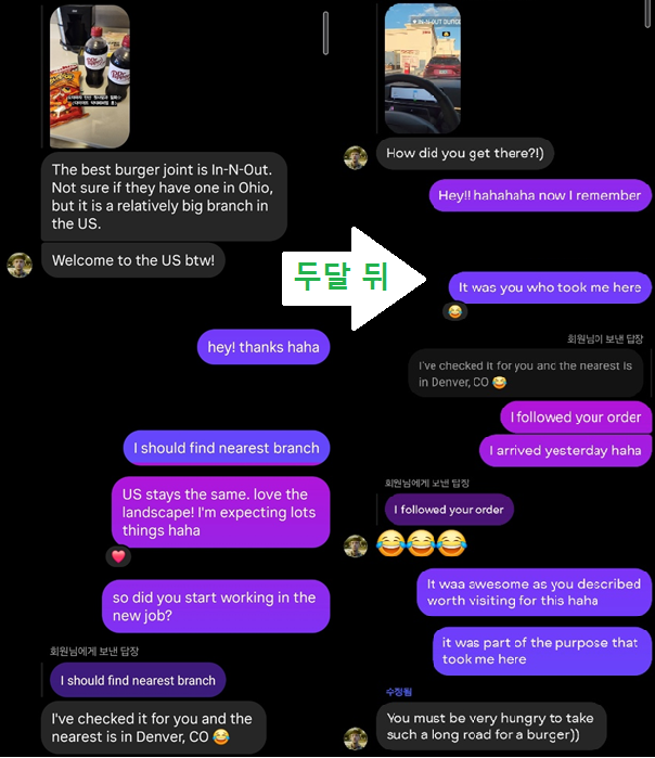 추천해주고 싶은 햄버거 가게가 있는데 당시 체류하던 곳 근처에 있다면 꼭 들러보라며 직접 가까운 곳을 찾아주었다.